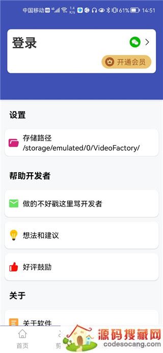 5、点击更多,这里用户可以登录发现更多新的功能,同时还可以对剪辑视频的储存路径进行一系列的设置,更多功能等着用户自行下载体验。