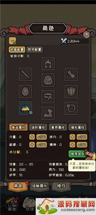 5、点击左下角角色,可以进入人物页面,可以在这里查看角色当前属性,还可以对角色进行加点强化。