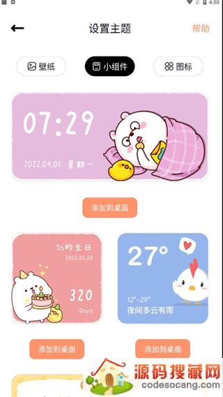 3、新增电量小组件、动态相框、动态时钟小组件、喝水打卡及核酸提醒等等小组件样式。