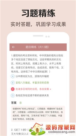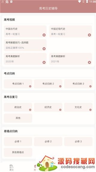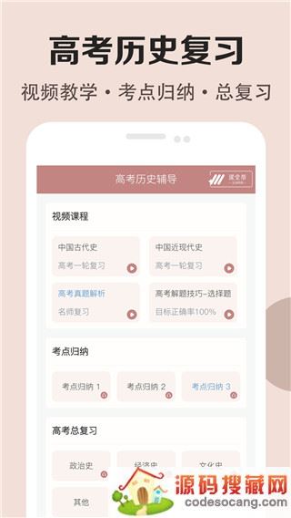 高中历史课堂最新版,该软件是由长沙立语信息科技有限公司推出的全新的历史学习软件。这款软件为用户收录了全部高中历史课本,用户通过手机就可以进行听课学习,还有各种高考视频为用户讲解重点难点,从最大程度上帮助用户快速提高历史成绩。用户可以根据自身的学习情况进行学习,软件还为用户提供了考点归纳,易错点归纳等专项课程学习,用户可以进行查缺补漏,把自己薄弱的部分进行完善,建立自己的学习框架,掌握各种难易点,提升考试能力。另外,还有历年真题试卷供用户进行练习,帮助用户考出高分,有需要的小伙伴们快来本站下载这款软件吧。