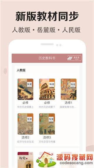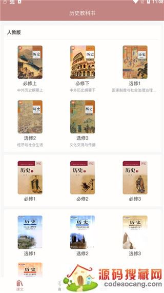1、在本站下载安装并打开高中历史课堂软件,进入首页,可以看到里面为用户集齐了高中历史的所有课本。