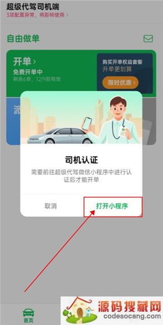 1、首先我们打开软件,使用微信登录后进入首页,然后进入小程序进行司机认证