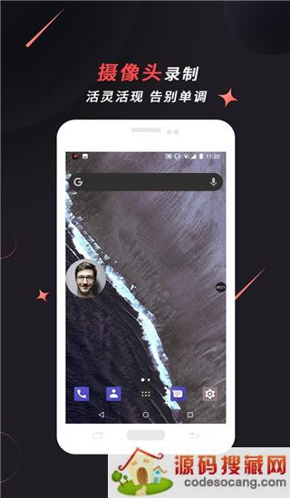 3、前置摄像头录制为了可以在视频聊天或网络直播实时记录您的状态,软件支持录制前置摄像头,手机也能录制画中画效果!