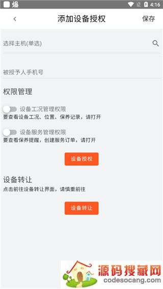 3、然后选择主机,并输入被授予人手机号,点击保存即可;