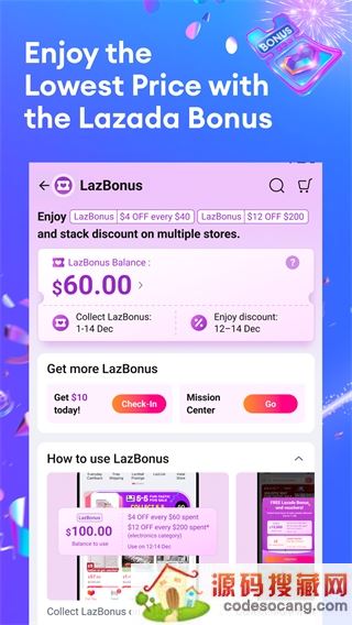 2、Lazada奖金:每天领取Lazada奖励,并在11日至13日结账,享受更低的价格;