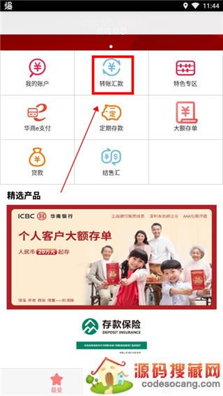 3、登录后,在主页中点击【转账汇款】。