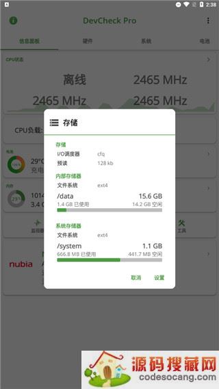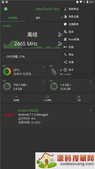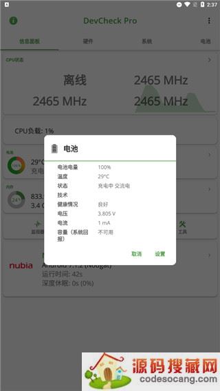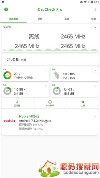 1、通过DevCheck信息面板,用户能实时监控观察手机运行状态,比如,当前CPU、GPU、电池的温度,处理器实时频率、负载情况等。