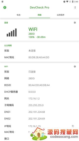 5、网络显示有关您的WiFi和移动/蜂窝连接的信息,包括IP地址(ipv4和ipv6),连接信息,运营商,电话号码,电话和网络类型;