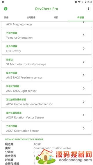 6、传感器设备上所有传感器的列表,包括类型,制造商,功率和分辨率。