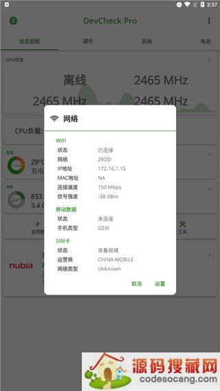 5、支持查看手机的硬件参数,相机、系统信息、网络信息和电池信息,覆盖非常全面。