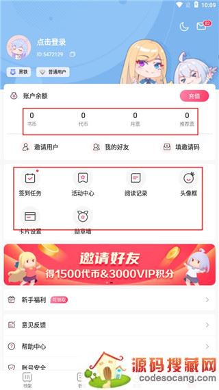 7、点击进入我的,用户可以在这里查看自己的账户,还有签到中心,活动中心,阅读记录等快捷入口。