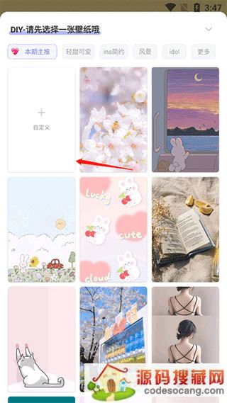 1、下载好布丁锁屏官方版后,点击进入。可以直接选择一个喜欢的壁纸设置,也可以在首页中选择右上角自己制作一个主题。