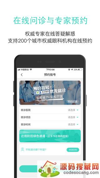 5、预约挂号用户可以通过眼护士app在线预约权威专家