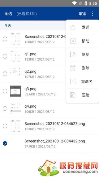 Q: 我该如何压缩文件?A: 通过单击文件图标选择您所需要压缩的文件(文件名左侧),在其中一个选中文件的文件名上单击并在菜单中选择“压缩”操作,设置所需选项以及方式后点击确定按钮即可。
