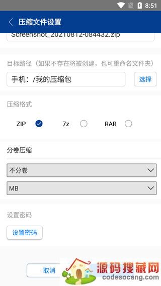 4、设置存储路径和压缩格式,以及是否设置密码,点击确定开始压缩;