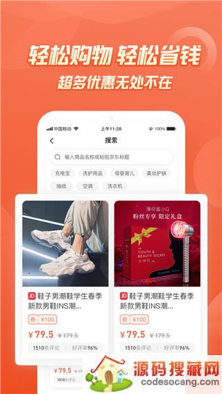 1、点击搜索,即可搜索想要搜索的商品,快速搜索优惠券