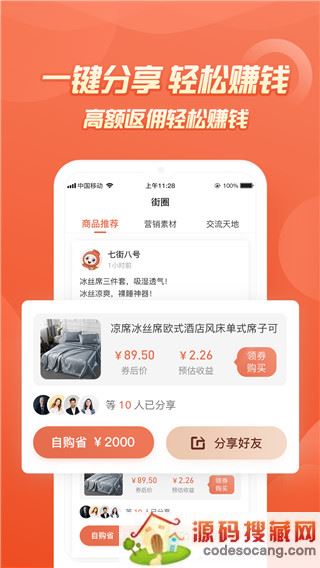 七街八号app是由义乌市帮帮网络技术有限公司推出的一款全网购物省钱小助手,在这里软件每天都会为用户们非常丰富且价格实惠的产品供你购买,而这其中就包含了服装、美妆、居家、母婴、食品、鞋包、数码等等设备,可以说覆盖了我们生活的方方面面了。福利上,软件也是每天做不停呢,例如9块9包邮、限时抢购、天天特价等等都是支持的哦。除此之外呢,软件还有返佣服务哦,这个想象大家不用我多说吧,其中为了方便用户们操作提供了自动绑定机制呢,意思就是当你分享给别人是自动绑定下级代理呢,免受复杂操作的干扰。而对这款软件所提供的服务感兴趣的朋友们,欢迎大家免费下载体验。