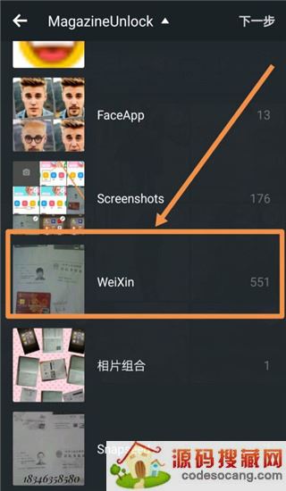 3、此时会进入不同照片的相册文件夹列表中,点按其中需要添加照片所在的相册文件夹,此处点按的是weixin相册文件夹,在微信中收到的图片,手动保存后,都存放在此处。