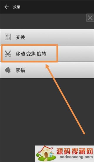 8、如果要更改图片位置,需要点按交换标志。如果要组成长图的图片的位置,在弹出的菜单中点按移动、变焦、旋转标志。