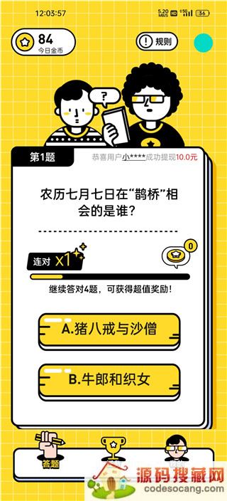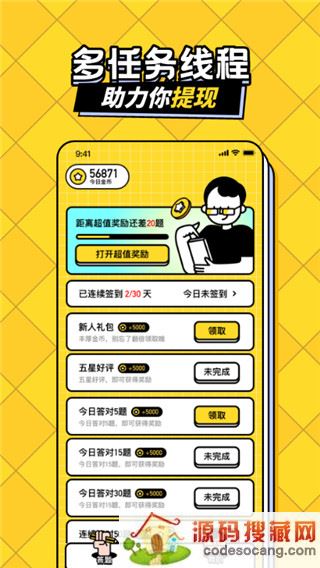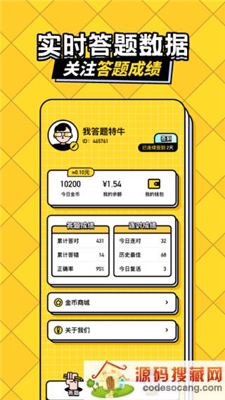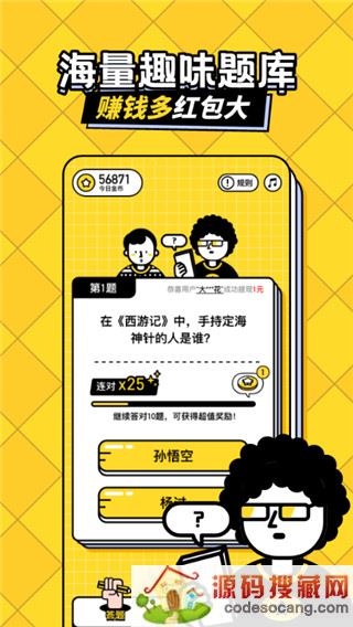 我答题特牛红包版是由厦门猫呗信息科技有限公司开发的一款答题就能赚零花钱的APP。该游戏为玩家准备了海量的答题类型以及丰富的答题内容,包含脑筋急转弯、成语、诗词和歇后语等多类型的题,题目内容上天入地无所不有像生活、娱乐、文学、天文、地理等,玩家可以充分发挥您的知识面,用户可以无限答题,回答正确将获得一定的金币奖励,回答错误则没有奖励,连续回答正确可以触发连对,奖励更多,回答错误则清零,所以回答时用户需要谨慎了。同时游戏里还有各种丰富的奖励包括签到红包、答题红包以及新人红包等,还有更多的福利等您探索发现。最后我答题特牛红包版设计界面简洁,只有三个主界面,操作也简单,还有休闲好听的音乐,在一边答题赚钱的同时还能学到海量的知识,何为而不为呢,快去下载体验吧!