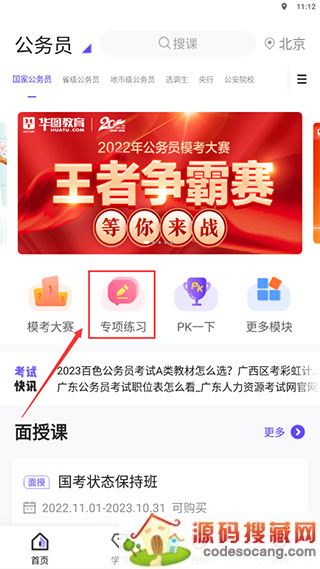 2、接着点击中间的【专项练习】快捷入口,右上角可以切换定位。
