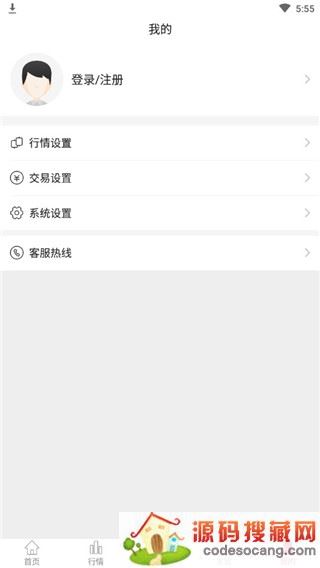 5、点击我的,可以登录注册app,进行行情,交易,系统设置等
