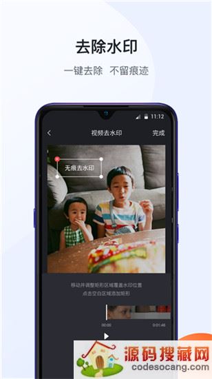 2、快速去水印选择有水印的视频,然后框定水印位置,消除视频中的文字水印、马赛克等,一键去水印。