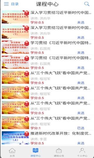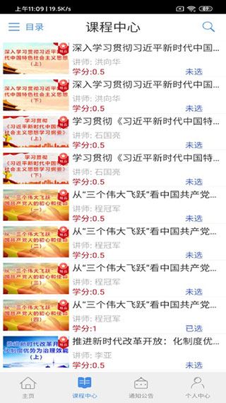 3、进入课程中心,选择要看的进行观看,看完的可以获得学分;
