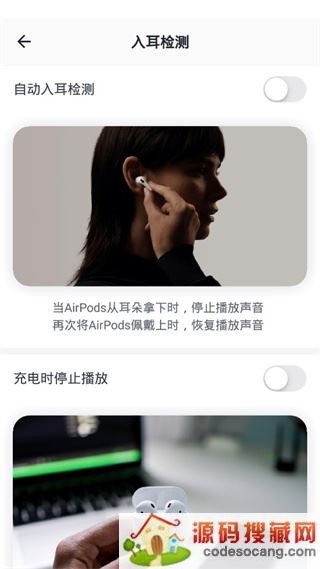 5、支持耳机入耳检测,实现iPhone上同样的效果;