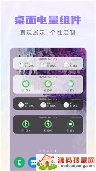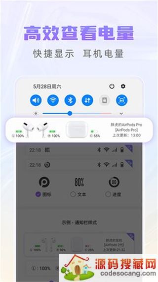 7、支持在桌面小组件,通知栏,状态栏中都可以查看蓝牙耳机电量;