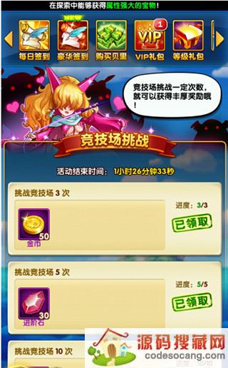 所谓的挑战福利就是完成所给的任务,来获得金币,3天一个轮回,分别通过竞技场,副本,探索来完成任务,3天下来,全部完成,可以获得400金币(净赚,由于竞技场需要购买次数,必买。