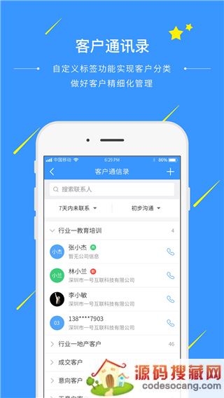 通信助手app是一款非常好用的销售管理及办公为一体的移动CRM软件,这款软件集成了非常多好用的办公模块,不管是公司团队通讯录、客户通讯录、个人通讯录模块,拨号盘模块、通话记录模块这里全都有,并且能够根据用户的权限删除或者增加需要的客户记录或者是分组,软件非常的好用。