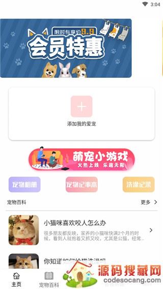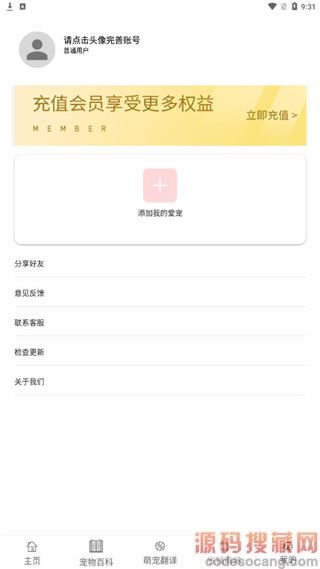 2、然后进入软件主页,这里可以将你的宠物添加至其中;