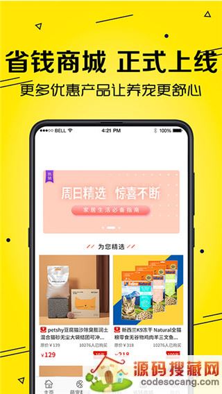5、进入省钱商城,这里可以购买很多有关于宠物的东西,非常方便。