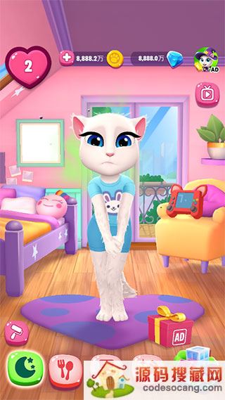 我的安吉拉2是由广州金科文化科技有限公司为了喜欢玩养成游戏的朋友推出的一款趣味十足的模拟经营游戏,在这里玩家将能为安吉拉收集各式各样的服装、发饰,带她去游乐园、蛋糕店、咖啡屋、商城、服装店等去游玩,一步步的看着她成长快乐。并且你还能为安吉拉画上一个精美的妆容,让她参加游戏内置的垃圾分类、跑酷、答题等7个迷你游戏。游戏采用了独特的情绪系统,当你没将安吉拉照顾好的时候,其饥饿、困倦、厌烦等情绪都会一拥而上。另外,我的安吉拉2玩法和汤姆猫差不多,不过由于安吉拉是女孩子你要精心准备装扮照顾她!