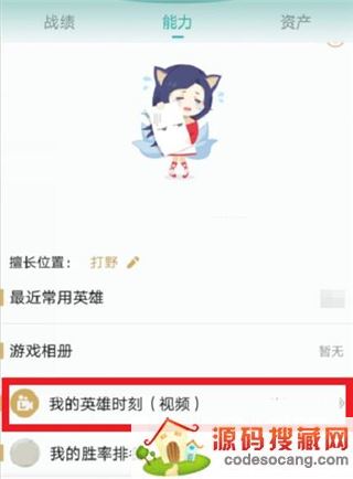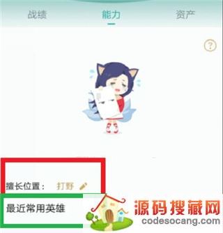 2、再移至上方“能力”字样处,这里有最近常用到的英雄,包括擅长位置等资料。