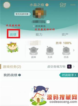 1、打开“战绩”页面,轻点此处,以往的战绩都会清晰浮现。
