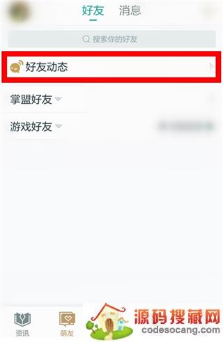 4、进入到资讯主界面,点击下方菜单栏,切换到“萌友”栏,如下图:
