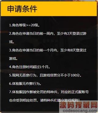 7、体验服因作弊被处罚的特种兵,对应的正式服账号也会受到相应处罚,请特种兵们遵守游戏规则!