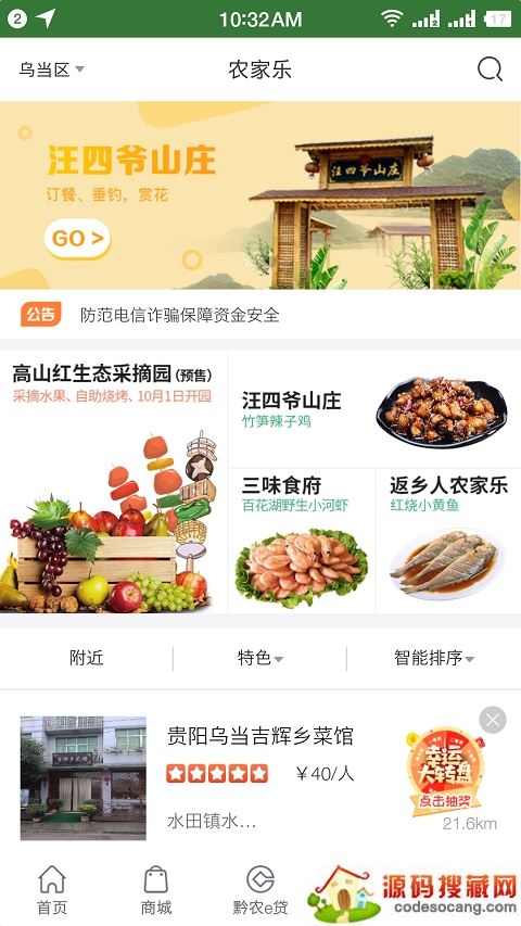 4.农家乐包括浏览店铺及包房,预订包房、特色菜及服务,加入购物车,下单,支付,评价及订单查询等功能。