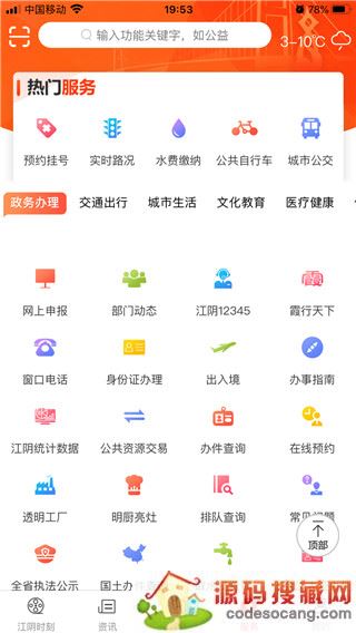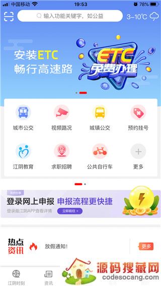 最江阴app是由江阴大澄新媒体发展有限公司发行的一款专门为江阴当地居民打造的手机生活服务软件。软件为用户提供一条龙服务,可以帮助用户解决生活上百分之八十的烦恼。另外,软件功能强大,内置医院挂号、查询社保公积金、水费缴纳、公交线路查询、公共自行车租赁、城区停车场车位查询、实时监控查看等等生活常用功能为一体的软件,用户可以通过这些功能,从此出行无忧,看病变得更容易,从各个方面帮助用户让生活更加高效。其次,软件还为用户提供实时咨询,用户可以通过它知道当地的政策要求以及各种新闻。除此之外,软件新增公益报名,日常开展公益活动的部门和组织可自行在该版块中填写公布活动报名信息,用户如有感兴趣的活动便可报名参加。同时,还推出了出行健康码,用户直接一码在手天下我有,喜欢这款软件的用户欢迎下载体验!