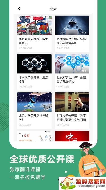 网易公开课app全球知名院校的高级教授公开课,免费观看,最大最全的课程平台,国内外顶尖学府的海量名师名课,覆盖文学、历史、经济、计算机等数十个领域;最新最赞的TED演讲视频、精彩优质的纪录片、轻松易学的可汗学院,无数好内容等着你。