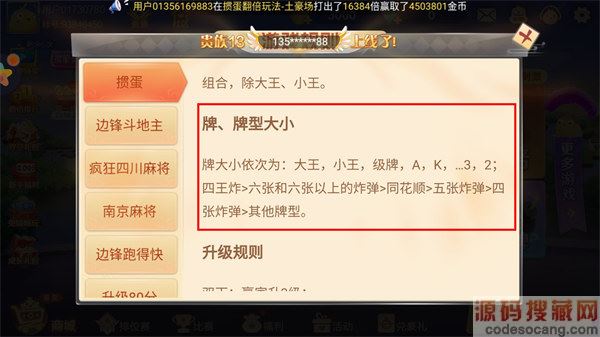 3、多种玩法齐聚,“斗地主”、“升级"&"麻将"全都有!