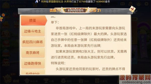 经典掼蛋,二人掼蛋,不洗牌,团团转,超级翻倍场刺激不能停!