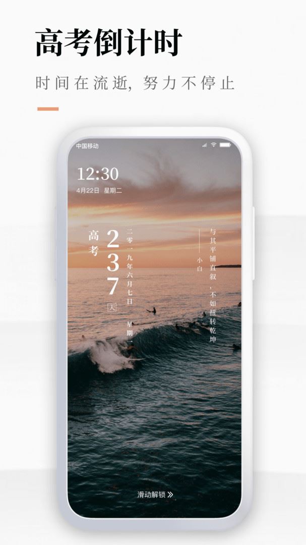 2.锁屏计时,小部件,支持日、时、分、秒,把时间抓在自己手中,随时可以设置调节;
