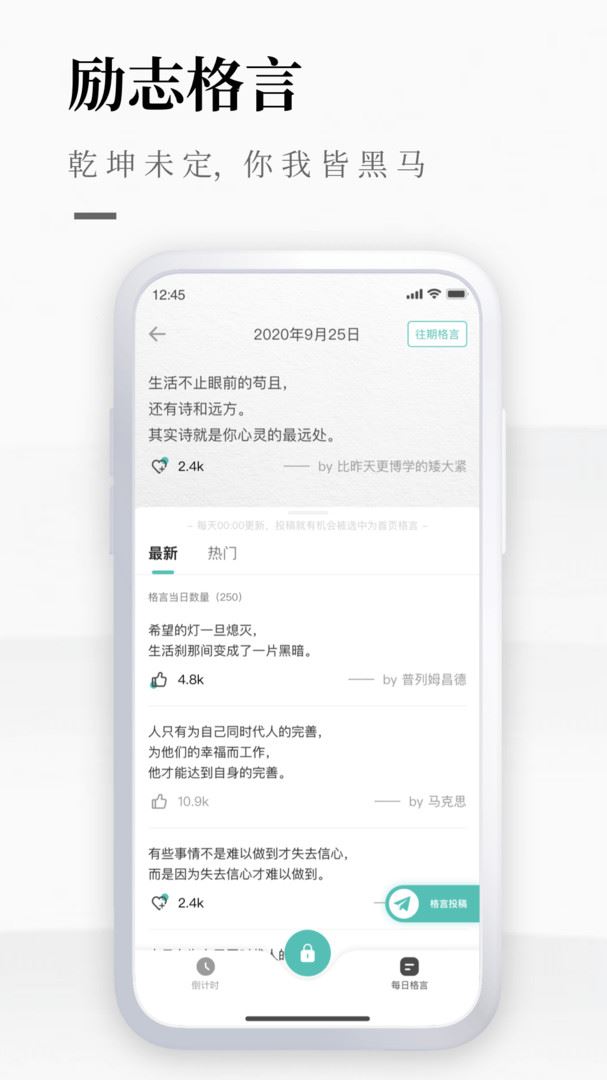 3.格言金句,各种激励人心的金句名言,都汇聚在平台,每天更新一句经典语句。