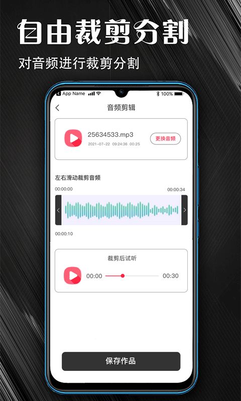 MP3音频提取器是一款专业的音频提取音频剪辑工具,可以快速的将视频中的音频提取出来,同时还提供音频剪辑、音频拼接、音频变声、语速调节、加背景音等处理工具,并转化成想要的文件格式导出,轻松完成音频提取剪辑工作!特色功能:【音频提取】支持提取视频中的音频,从视频中提取所想要的音频,还可以对提取的音频进行任意裁剪后设置为想要手机铃声;【音频剪辑】可以对各类型的音频剪切制作,截取音频中你想要的那一部分;【格式转换】音频提取器提供了多种音频格式间的相互转换,满足您对不同音频格式的需求,支持的格式有:mp3,flac,aac,wav.m4a,wma等众多常用的音频格式;【音频拼接】可以选择2个以上的音频,一键切换;同时支持自由拖动,简单易操作;【加背景音】支持添加背景音乐,添加自己想要的背景乐;【录音机】随心所欲,各类音频,随意录制;