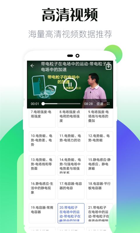 高中:高中教学覆盖高高中学习语文英语地理化学物理生物历史,政治,高中同步课堂,高中同步,人教点读,面向高中学生提供优质的点读课本和同步视频讲解,支持各地主要教材版本,课程生动有趣易懂,高中教学视频,学生课后同步辅导,紧贴各地教材,语数外,数理化,三科教材同步课程,在家就能听课 。本软件适用于高一数学、高二数学、高三数学以及备战高考的学生,更有高中语文、高中英语、高中物理、高中历史、高中生物、高中政治、高中化学九大高考系列软件供你选择。提升各科学习效率!初中:初中-初中数学,初中英语,初中语文,初中化学,初中物理,初中物理初中政治小学教学覆盖初中学习语文英语地理化学物理生物历史,政治,初中同步课堂,初中同步,人教点读,面向初中学生提供优质的点读课本和同步视频讲解,支持各地主要教材版本,课程生动有趣易懂,初中教学视频,学生课后同步辅导,紧贴教材,语数外,数理化,三科教材同步课程,在家就能听课 。-涵盖了初中数学各章节内容的知识点总结,-十分适合初中学生、教师使用,-精选数学教学短视频,让学习更加轻松,别着急,学霸君初中系列教程为你提供帮助,看初中数学视频,为初中数学打好基础,考初分,当学霸,初中课堂- 高中课堂教学视频:数学、语文、英语、化学、物理、政治、历史高一语文、高一数学、高一英语、高一物理、高一化学、高一历史高二语文、高二数学、高二英语、高二物理、高二化学、高二历史高三语文、高三数学、高三英语、高三物理、高三化学、高三历史高中语文、高中数学、高中英语、高中物理、高中化学、高中历史- 初中课堂教学视频:初一语文、初一数学、初一英语、初一物理、初一化学、初一历史初二语文、初二数学、初二英语、初二物理、初二化学、初二历史初三语文、初三数学、初三英语、初三物理、初三化学、初三历史初中语文、初中数学、初中英语、初中物理、初中化学、初中历史初中理科、初中文科,同步教学课堂视频