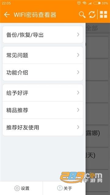 功能比较简单,可以查看android手机曾经成功连接的wifi热点的密码,(即当你成功连接到某wifi网络,但过了一段时间忘记了密码,可以在本软件里查看密码,但是使用前要获取root权限),可以对当前wifi进行测速的一款多功能wifi工具。