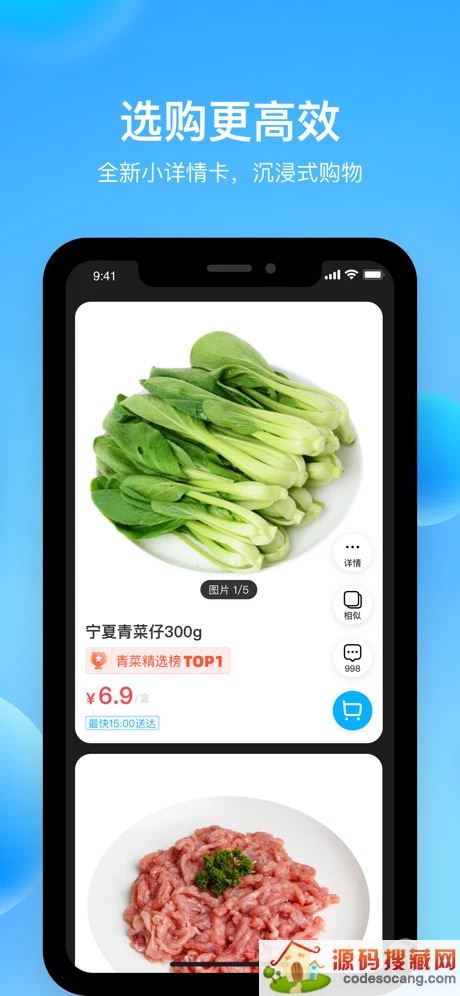 4、新鲜到家,下单后1小时可送达,保证产品新鲜品质,省去用户去传统菜市场的麻烦。